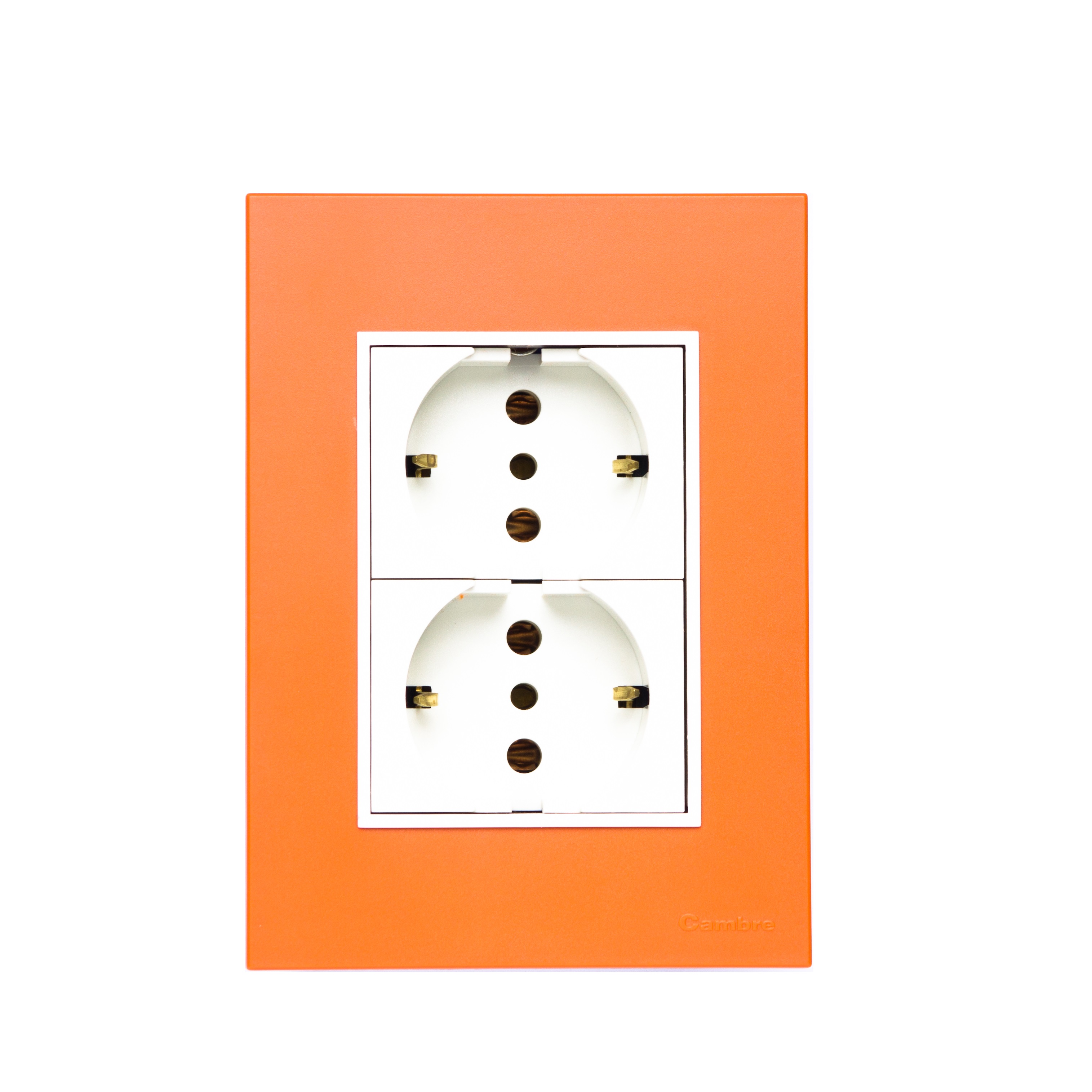 PLAQUETA NARANJA COD 4956 / BASTIDOR COD 4980 / 2 MOD. TOMA SCHUKO COD 6917 / RIBETE COD 4990. OPCIONAL MODULO NEGRO